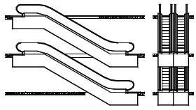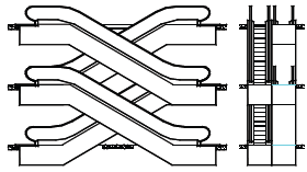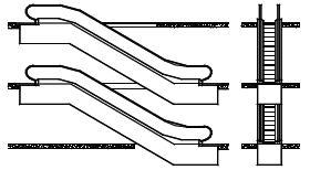Kiều bố trí này được sử dụng chủ yếu trong các siêu thị nhỏ giúp liên kết ba tầng thương mại. Với kiểu thang cuốn xếp hình kéo này đòi hỏi nhiều không gian, không liên tục.