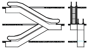Kiểu bố trí thang cuốn chữ X này được áp dụng cho các siêu thị, trung tâm thương mại lớn, các tòa nhà văn phòng, sân bay, nơi công công lưu lượng giao thông lớn giúp người sử dụng tiết kiệm thời gian nhanh chóng di chuyển giữa các tầng.