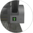 19 | Chống kẹt vách bậc thang Một hệ thống chổi lông được lắp đặt tại vách chân thang, bảo đảm cho giầy dép hành khách không bị kẹt vào giữa vách bậc thang và bậc thang. |